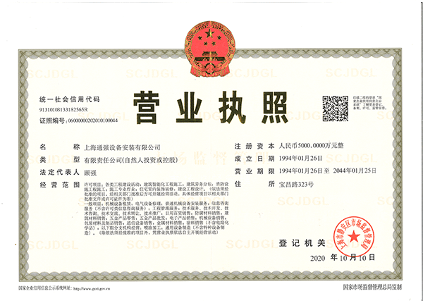 上海通強設備安裝有限公司注冊資金2000萬元,資產總量為100000萬元的專業設備安裝公司,公司專業從事工業與民用建筑的設備安裝、非標設備的制作、鋼結構制作安裝、中央空調系統的安裝,水電及管道的安裝。經過20多年艱苦創業現已成為一個具有國家二級安裝資質,獲得上海市“重合同,守信用”的施工單位。